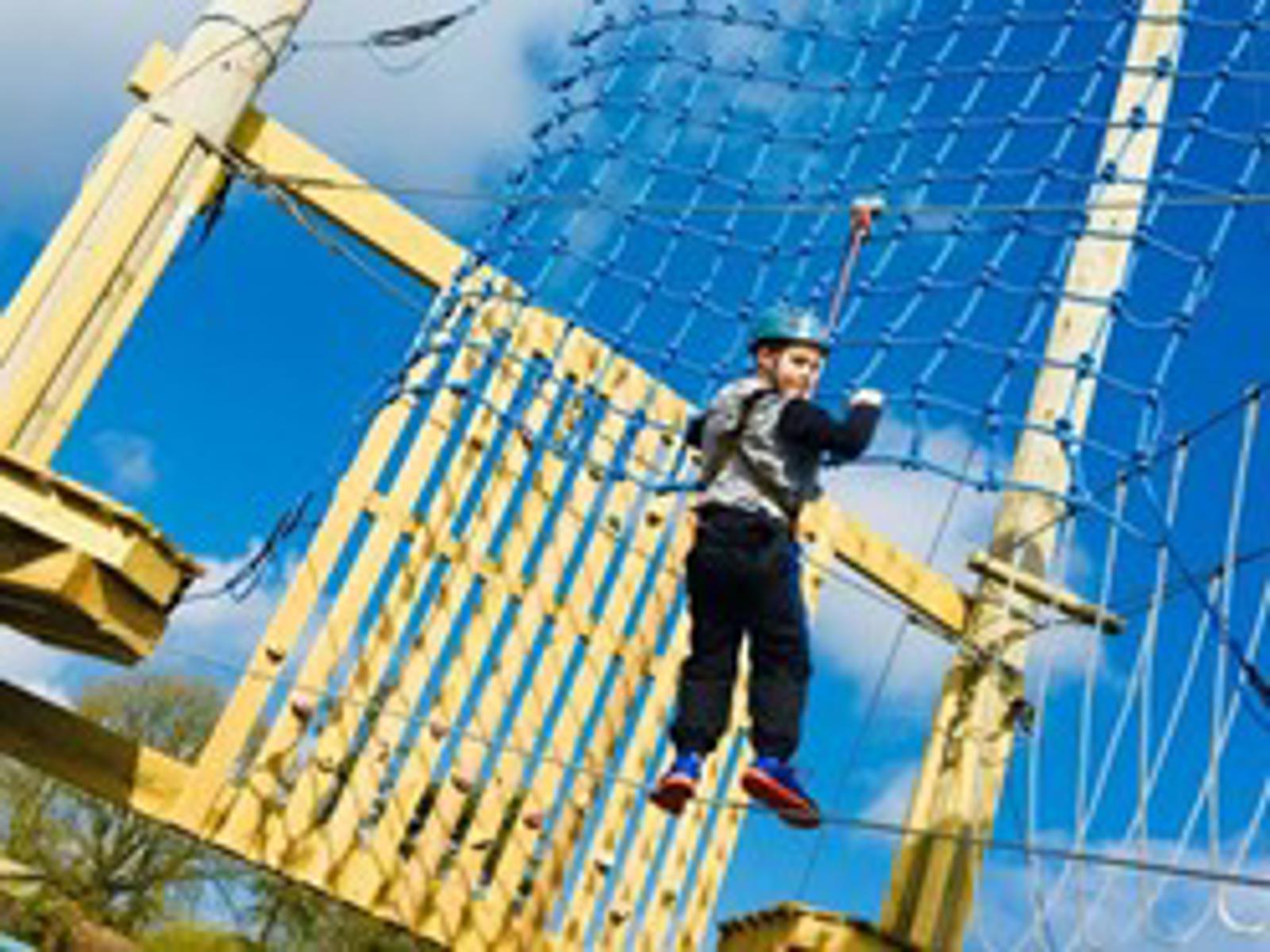 15 bridges! Rope Traverse! Balance Beam! Skateboard Cross! Zip Wire!