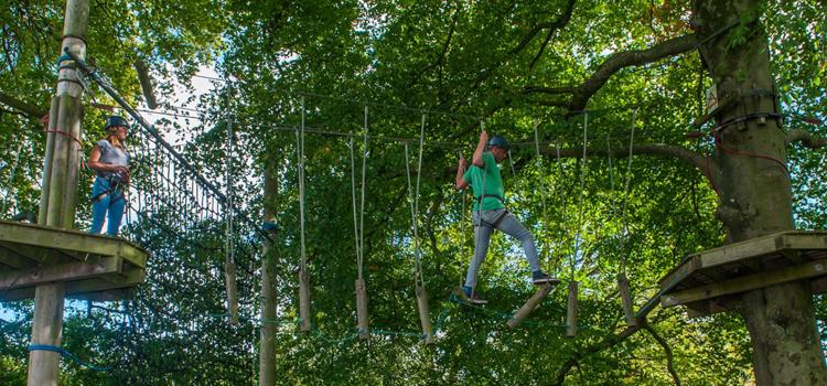 Our Tree Tops Trail is an exhilarating high ropes course where students challenge themselves to overcome obstacles such as wobbly bridges, climbing walls, cargo nets and zip wires.